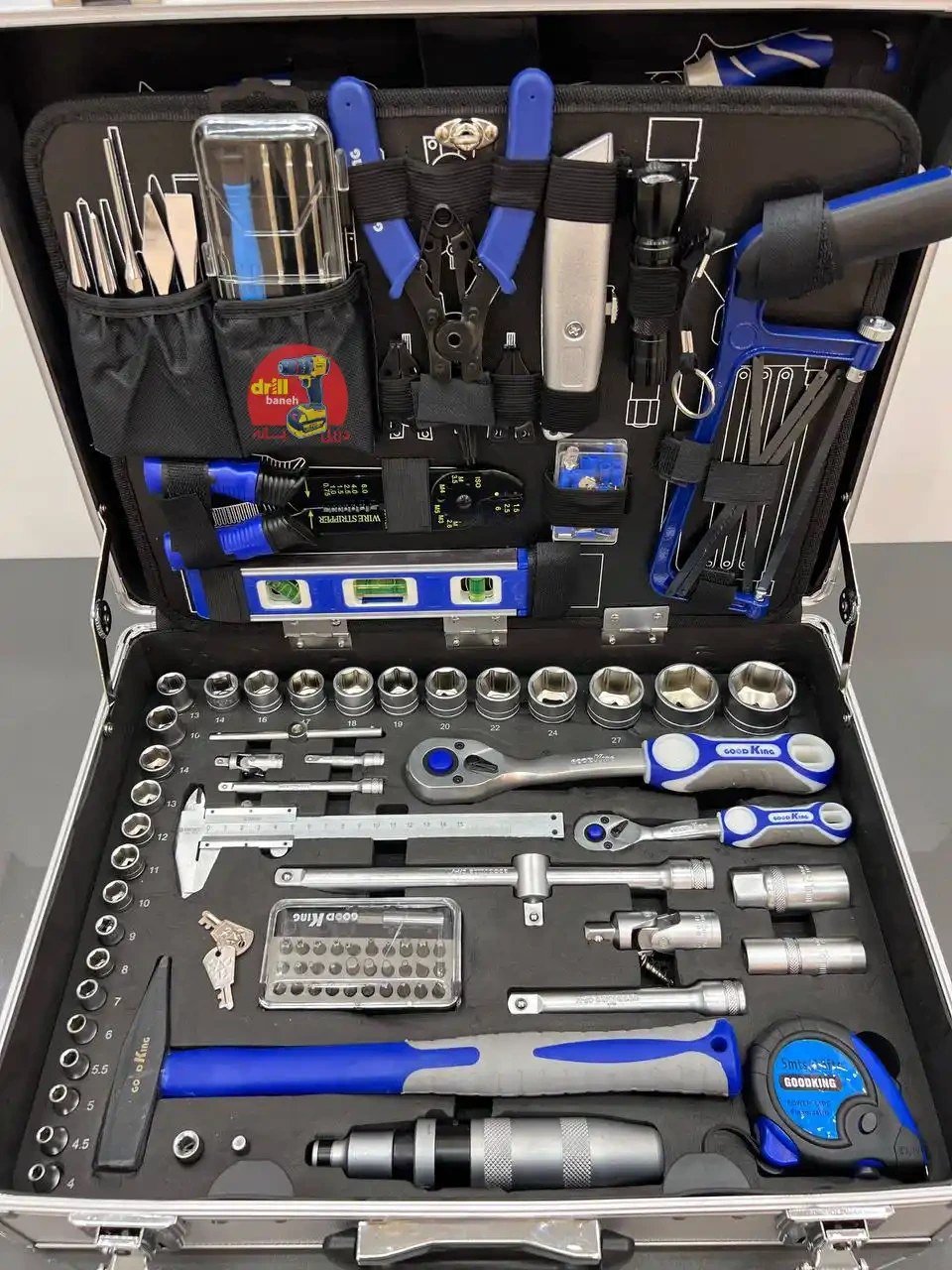 سر : بکس از 4 تا 32 دسته : بکس دنده ریز 1/2 و 3/8 درجه یک انواع : رابط کوتاه و متوسط و بلند 1/2 و 3/8 بکس : های بلند و لقلقی ست : آچار یکسر رینگ از سایز 8 تا 22 جعبه : ست خورشیدی ست : آچار آلن ست : نوک قلم ضربه ا ست : پیچگوشتی بزرگ تخت و چهارسو ست : پیچگوشتی موبایلی ابزار های : تکی صنعتی داخل جعبه (کولیس ، 20 عدد سر سوکت ، چراغ قوه ، چکش ، دم باریک ،انبردست ، سیم چین ، کلاغی ، گاز انبر ، سیم لخت کن : چند کاره ، خار باز کن چهار کله ، آچار فرانسه ، کاتر ، اره سه تیغه ، تراز آلمینیومی ، متر درجه یک ، فازمتر ،سوهان بزرگ)